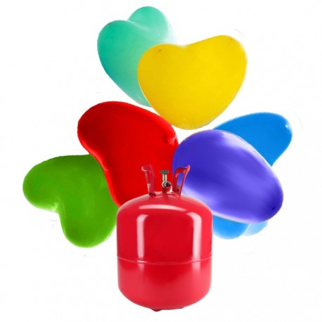 All'interno del pack troverai 50 palloncini a forma di cuore, una bombola di elio da 0,36 m3 e 50 nastrini bianchi con cui potrai legare i palloncini.